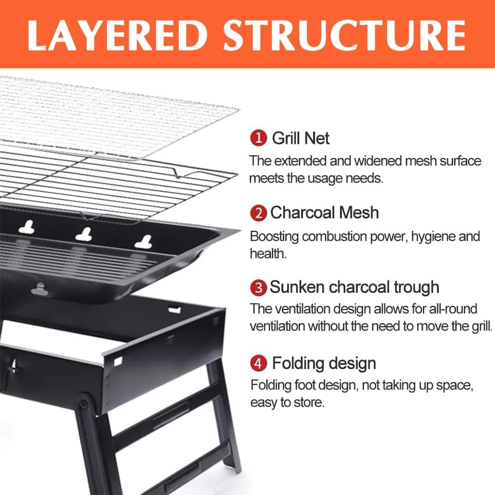 SMH LINE®SMH LINE® Opvouwbaar Houtskool BBQ - Opvouwbare en Draagbare Barbecue - Incl. Vuurschaal en Grillrooster - 36x27x20cm (LxBxH) - Tafelbarbecue